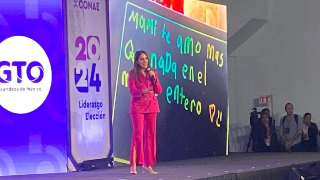 Para cerrar su presentación, Libia Dennise mostró un mensaje que su hija Eliza le dejó durante las campañas, lo que casi la llevó a las lágrimas.