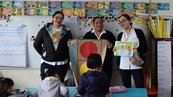 La profesora Ma. Sofía González Arredondo, con apoyo de diecinueve estudiantes de enfermería, realizaron prácticas comunitarias con madres, así como con niñas y niños que actualmente cursan el nivel de educación preescolar.