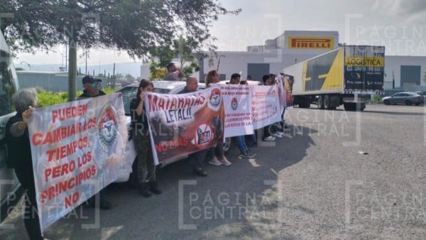 Con la consigna “¡Fuera la Liga!”, los trabajadores de Goodyear se expresaron pacíficamente afuera de Pirelli en Guanajuato Puerto Interior.