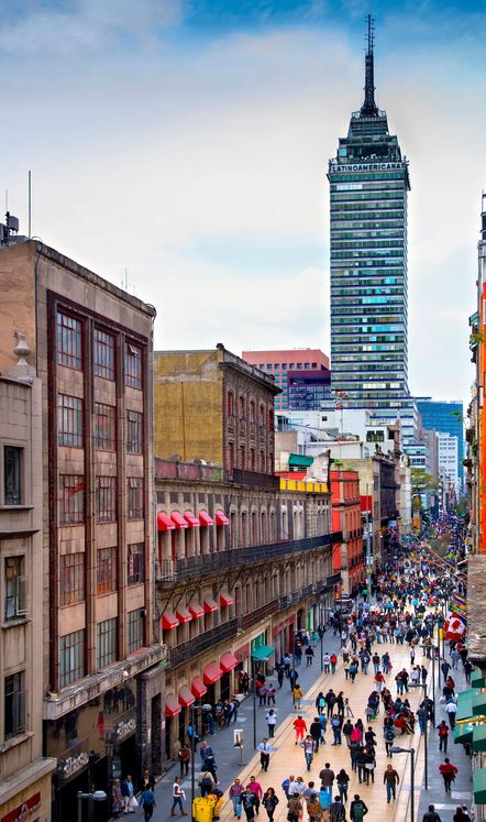 La calle de Madero en la Ciudad de México, también fue reconocida por su vista a la Torre Latinoamericana y su mezcla de arquitectura antigua y moderna, ocupando el puesto 63.