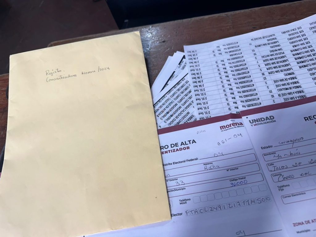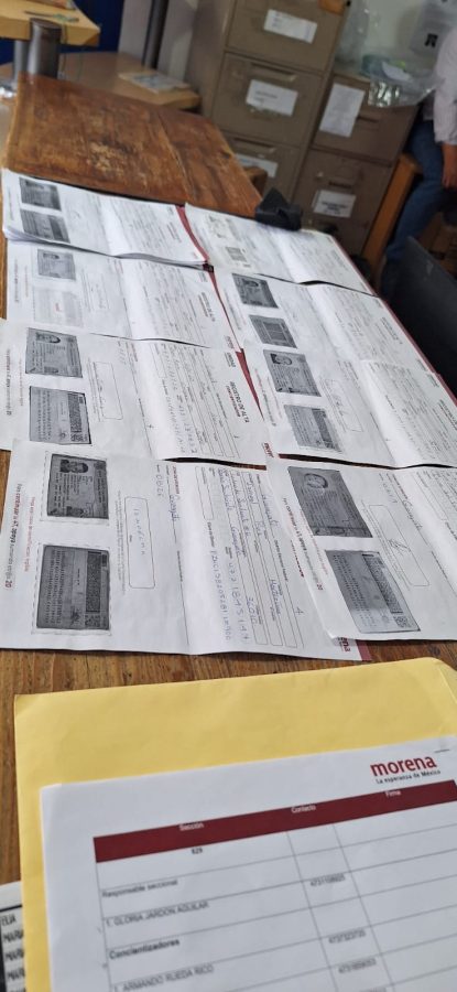 Llevaba un maletín en la mano y en el también varias listas, nominales o listas de aumento de personas con su credencial de elector que llevaban los logos de dicho partido”, resaltó.