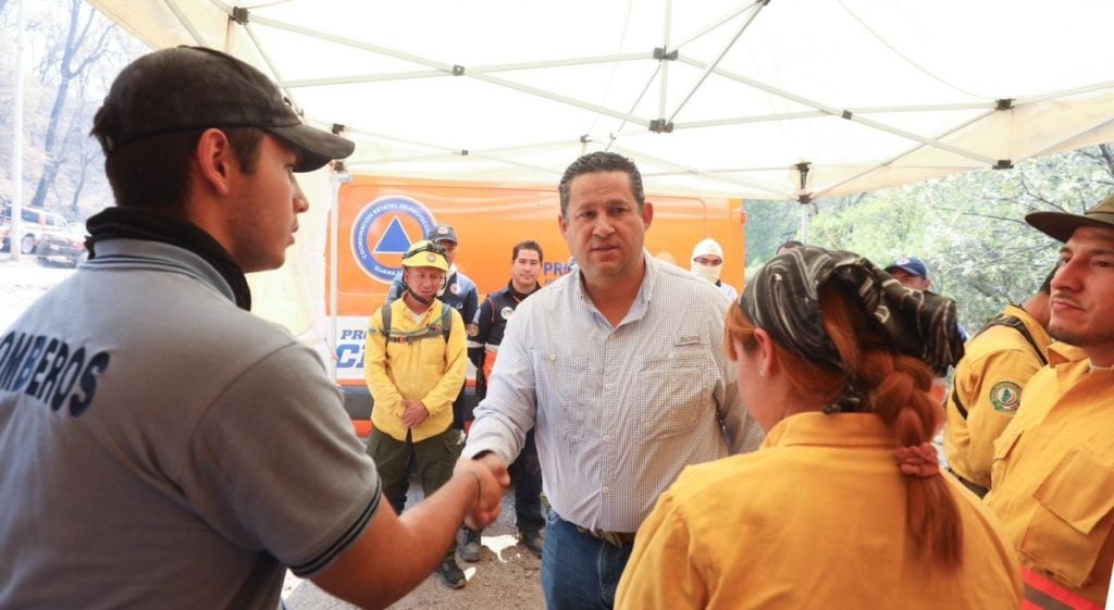 Guanajuato, Guanajuato - El gobernador del estado Diego Sinhue Rodríguez Vallejo, acudió al Puesto de Mando y Control que mantiene los trabajos para sofocar los incendios que se presentan desde