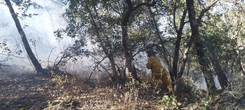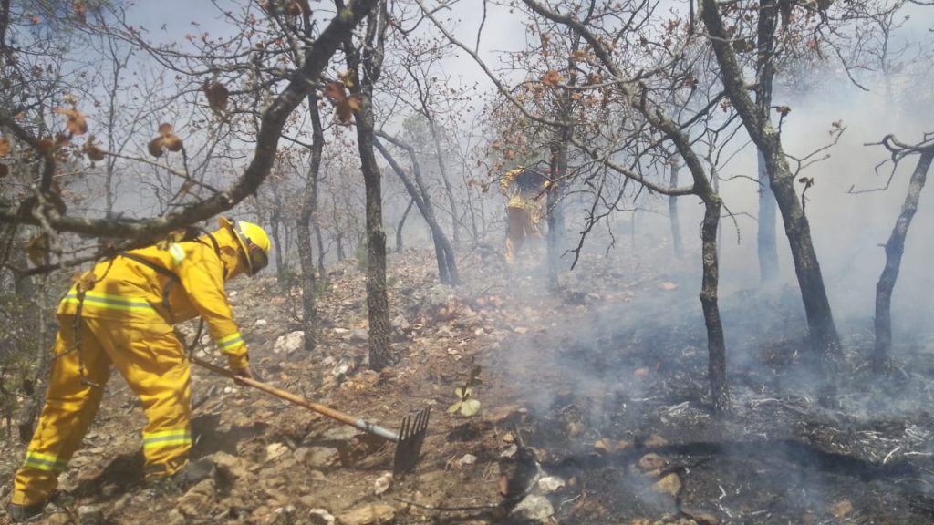 La Secretaría de Seguridad Pública del Estado a través de la Coordinación Estatal de Protección Civil, señaló que desde el pasado domingo 24 de marzo se han realizado trabajos de control y extinción del incendio forestal.