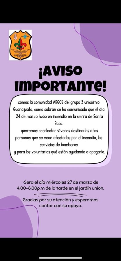 Síguenos en Google Noticias y entérate de todo lo que necesitas saber en tu día, da click aquí“La comunidad Argos, del Grupo 3 Unicornio Guanajuato, recolectamos víveres destinados a las personas que se vean afectadas por el incendio, los servicios de bomberos y para los voluntarios que están ayudando a apagarlo”, explica su publicación en redes, en donde señala que estarán de 4 a 6 de la tarde en el Jardín Unión recolectando víveres, agua y herramientas.