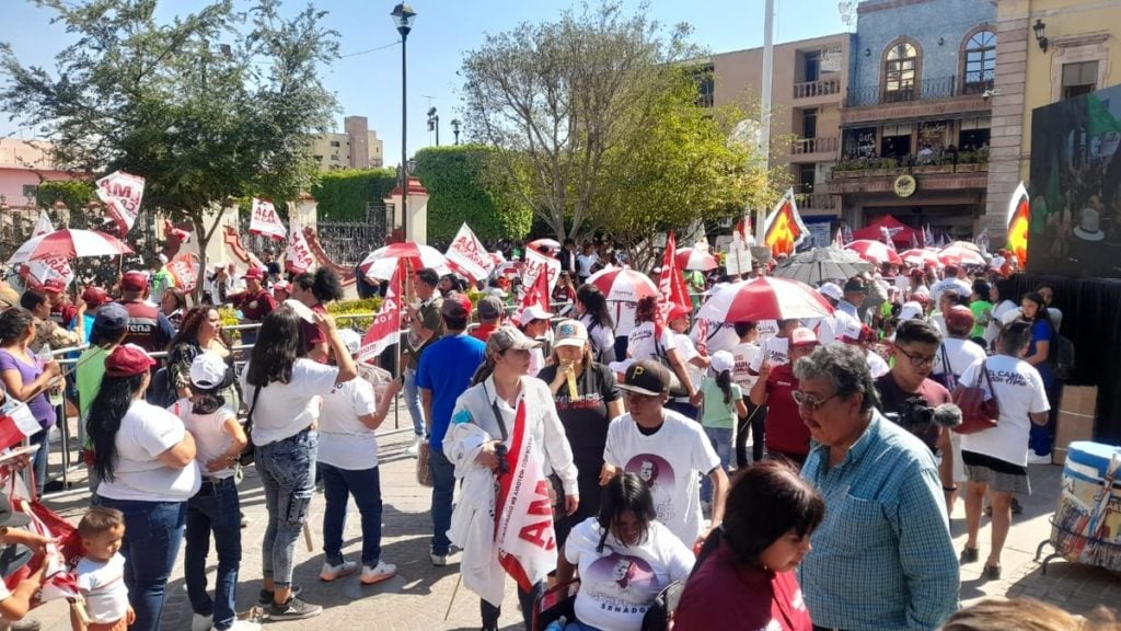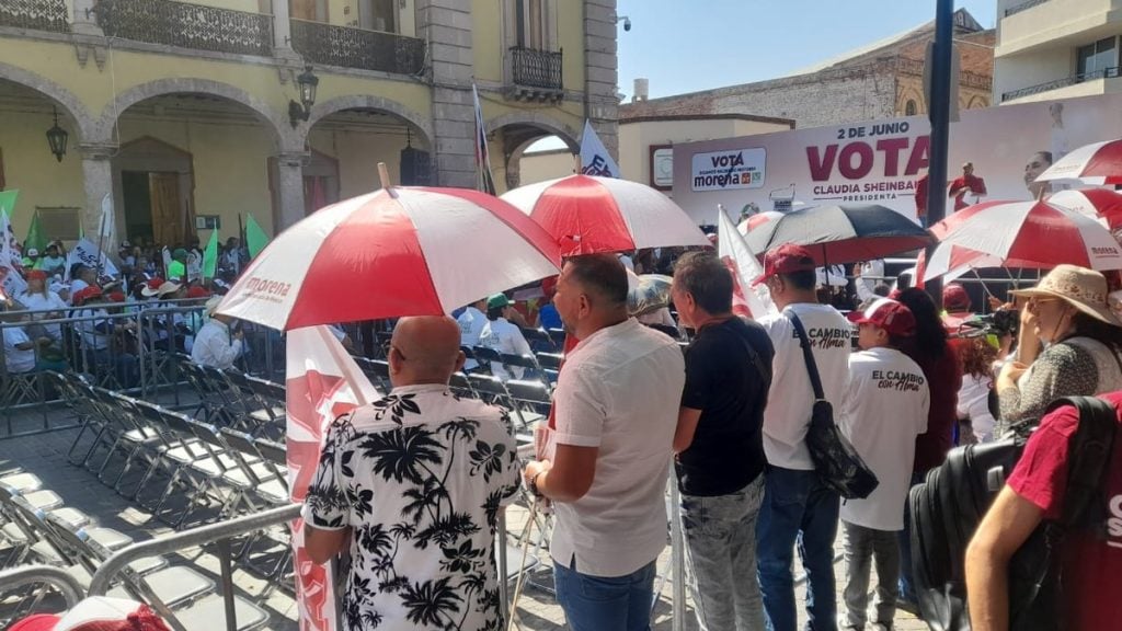 Sobre a la vivienda, prometió que se reformaría la ley para que el Infonavit y el Fovissste sean los constructores de vivienda y puedan rentar departamentos a jóvenes que recién comienzan a trabajar con la opción de comprarlos a la postre.Y en materia de seguridad, dijo que se combatirá con el apoyo a los jóvenes, así como con la cero impunidad y el programa Jóvenes Unen a México, que proveería espacios de desarrollo para los jóvenes mexicanos.Por último, hizo un llamado a los presentes a que este 2 de junio inviten con ellos a votar al menos a 10 personas para poder alcanzar el plan C de Morena y para ello indicó hay que marcar 6 de 6 candidaturas en favor de la coalición ‘Sigamos Haciendo Historia’ y Morena.Así se veía antes del mitín