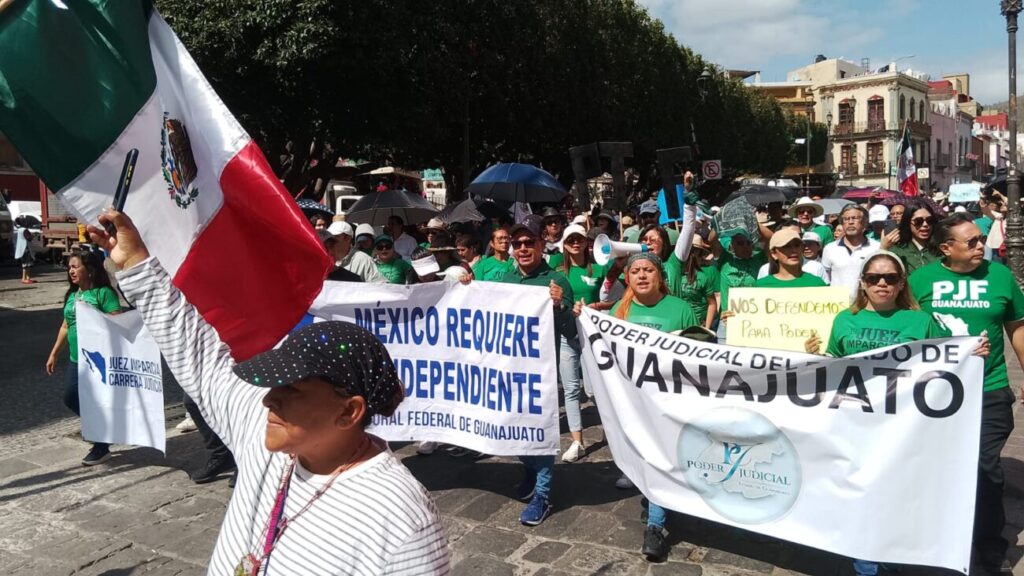 Guanajuato, Guanajuato - Unas 300 personas del Poder Judicial de Guanajuato participaron en la marcha por la libertad y la paz, que se realizó en repudio a la reforma judicial.