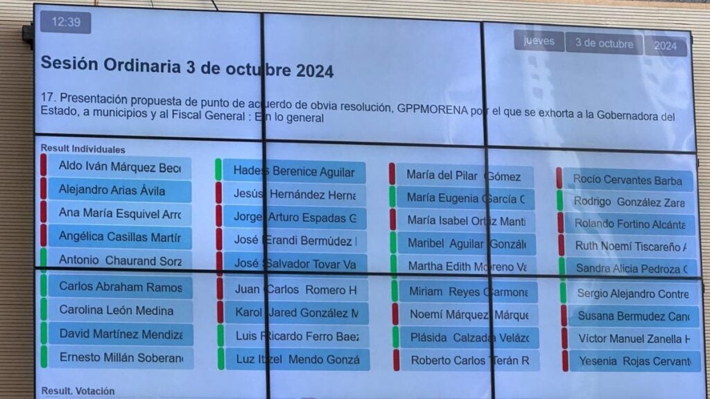 Con veinte votos en contra del PAN y del PRI, los legisladores descartaron la propuesta de Morena para exhortar al gobierno estatal y los 17 municipios integrantes de la Alerta de Violencia de Género, para que se dispusieran recursos y fortalecer las medidas contenidas en dicha alerta.