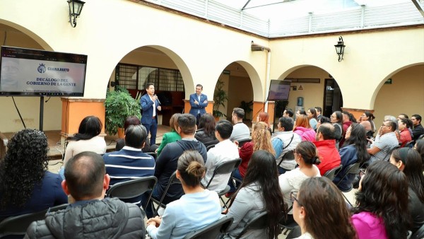 León, Guanajuato - El director general del Sistema DIF Estatal de Guanajuato, José Alfonso Borja Pimentel y el presidente del Consejo Consultivo del Sistema, Juan Carlos Montesino Carranza, se reunieron con personal de la institución reiterar el compromiso que se debe tener con los guanajuatenses mediante un decálogo.