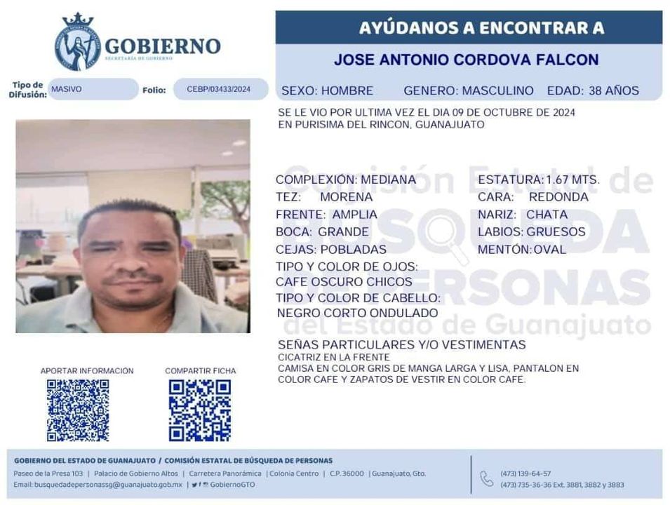 Según los primeros informes, Antonio fue presuntamente 'levantado' en la zona de San Francisco del Rincón, cerca de Purísima del Rincón, sin que hasta el momento se tenga más información sobre su paradero.
