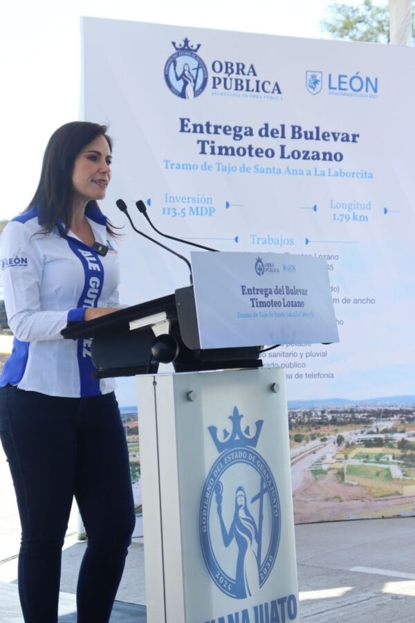 Libia Dennise García Muñoz Ledo, gobernadora de Guanajuato, expresó que la pavimentación del bulevar fue integral y completa, con banqueta y ciclovía.
