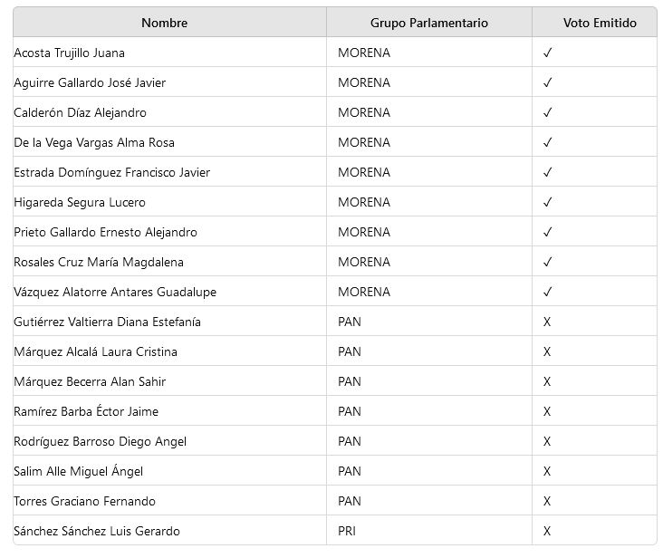 León, Guanajuato - Los nueve diputados federales de Guanajuato, pertenecientes a Morena, votaron a favor de la reforma judicial, mientras que los ocho votos en contra fueron emitidos por diputados del PAN y uno del PRI.