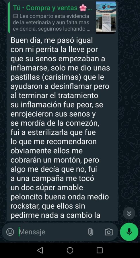 En ese momento decidió publicar su caso en redes sociales, y al ser compartido, comenzaron a surgir al menos 15 casos más de mascotas afectadas en la misma clínica de vecinos de colonias aledañas como Vista Esmeralda, Paseos de la Fragua y Palermo.
