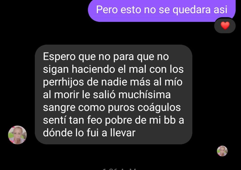 Ellos ocupan algo más que una simple multa, que se haga algo al respecto y que frenen o que quiten la veterinaria, la cancelen. Necesitamos que esto pare porque ya son demasiados; tienen personal no capacitado para atender a nuestros cachorros, nosotros venimos con toda nuestra confianza porque creemos que están capacitados y resulta que es lo contrario”.
