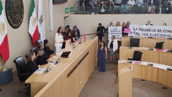 Algunas manifestaciones de protesta se dieron por parte del Grupo Parlamentario de Morena, que llevó pancartas con el texto “La pobreza se combate, no se usa electoralmente”.