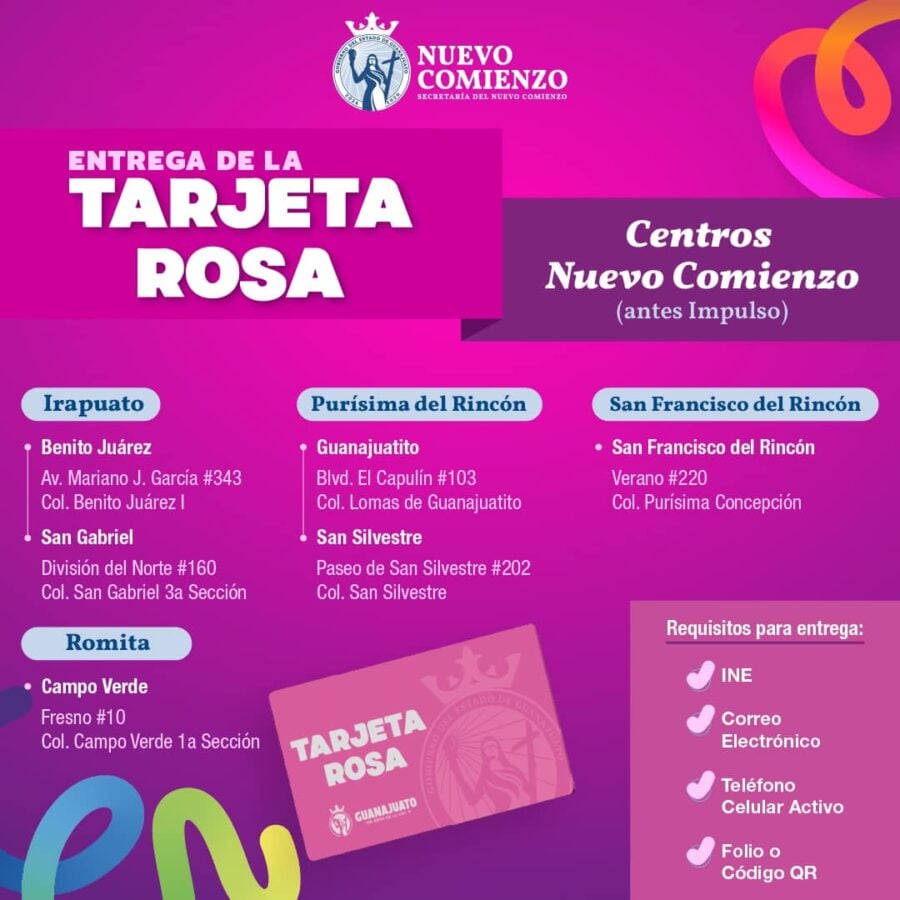 ¿Dónde se entregará la Tarjeta Rosa en Guanajuato?