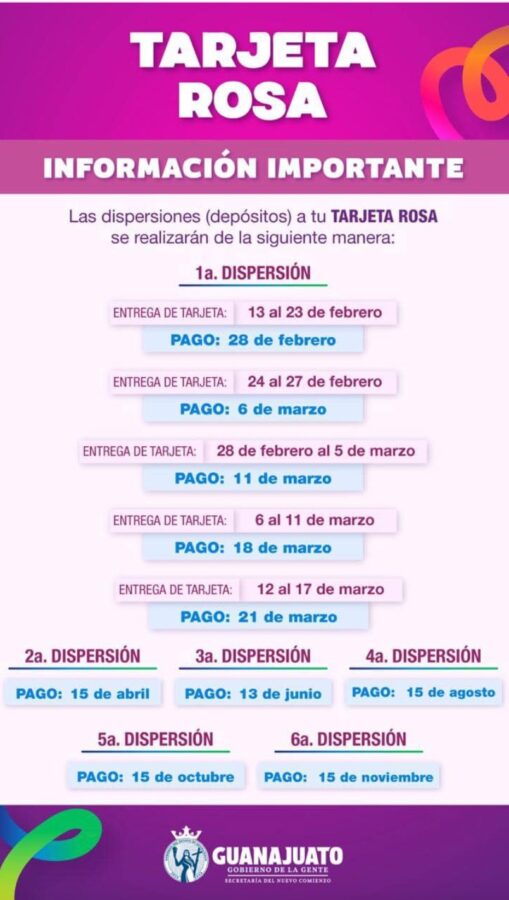 Próximas fechas de pago de la Tarjeta Rosa: