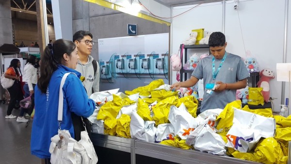 León, Guanajuato - En el Festival de Verano, sobre el pasillo principal del Poliforum, se pueden ver varios stands de venta de gastronomía, ropa, lámparas, calzado, marroquinería, entre otros, pero también está un lugar lleno de bolsas sorpresas de Mercado Libre a un costo de 100, 200 o hasta 500 pesos.