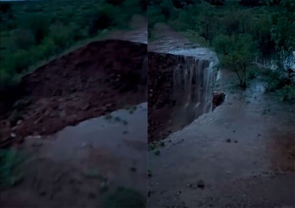 Imágenes difundidas en Facebook muestran cómo la tierra se desgaja mientras varios pobladores que inspeccionaban la zona corren para ponerse a salvo, al darse cuenta de lo que ocurriría diciendo: ¡Ámonos, qué esperanzas!”.