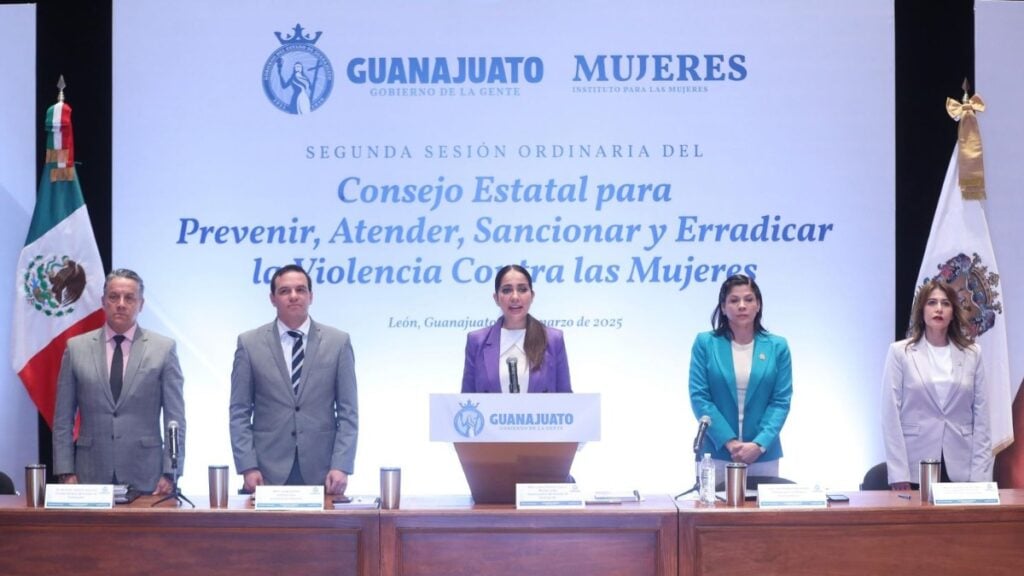 León, Guanajuato - La gobernadora Libia Dennise García Muñoz Ledo, al presidir la segunda sesión del Consejo Estatal para Prevenir, Atender, Sancionar y Erradicar la Violencia contra las Mujeres, afirmó que no se tolerará la violencia en contra de niñas, adolescentes y mujeres.