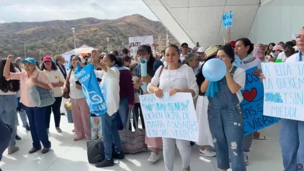 Las organizaciones Provida también llegaron con mantas y cartulinas en defensa de la vida. También llevaron a bebés y niños en exigencia a votar en contra de la iniciativa.
