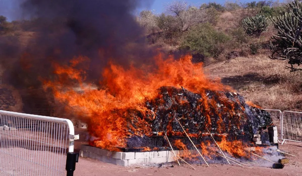 León, Guanajuato - La Fiscalía General del Estado de Guanajuato en conjunto con la Gobernadora Libia Dennise García Muñoz Ledo destruyeron droga, armas y diversos instrumentos involucrados en delitos.