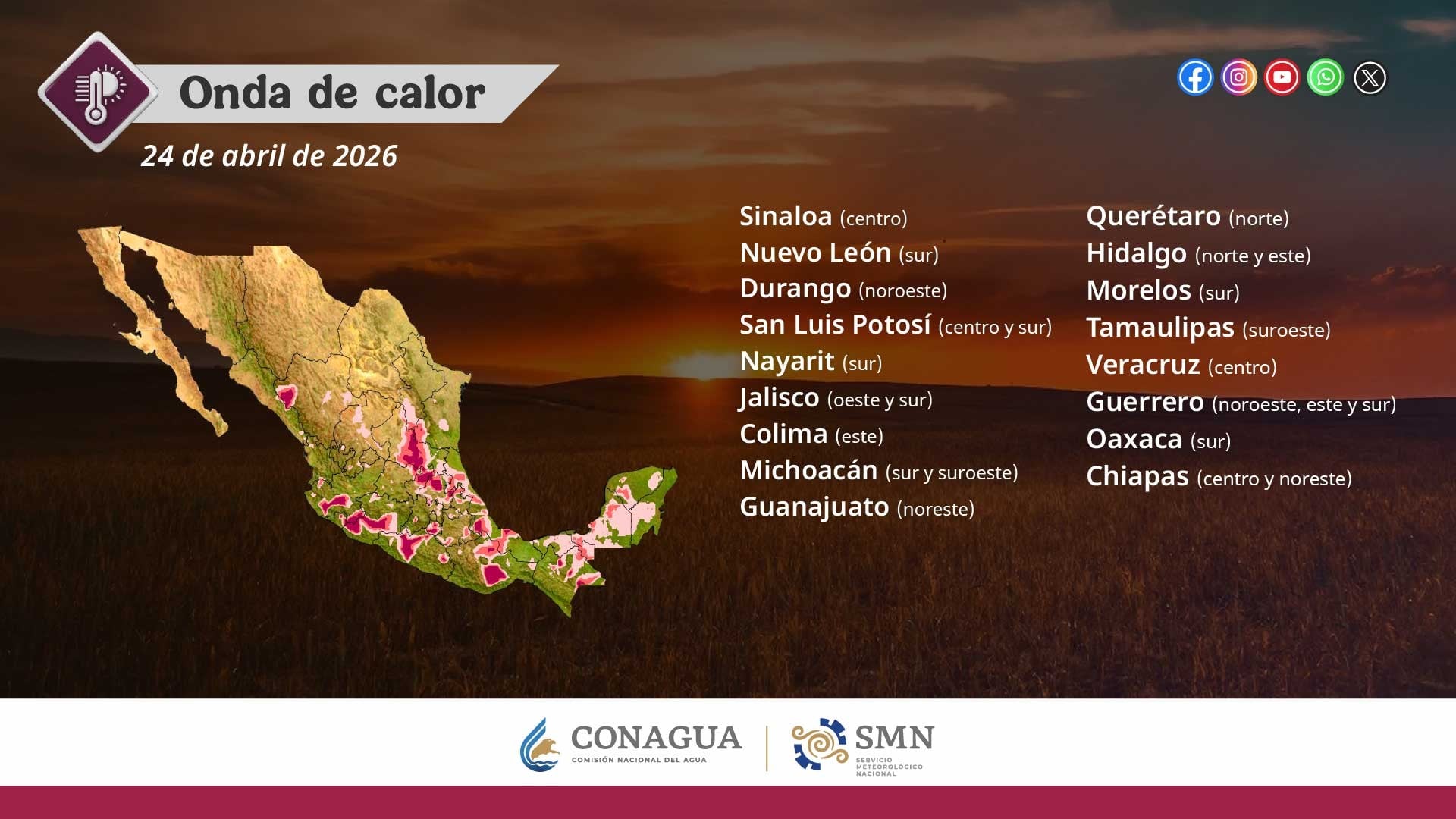 De acuerdo con información de la Comisión Nacional del Agua (Conagua) y el Servicio Meteorológico Nacional, se prevén temperaturas que pueden alcanzar los 40 a 45 °C en algunas zonas, incluyendo nuestro estado.