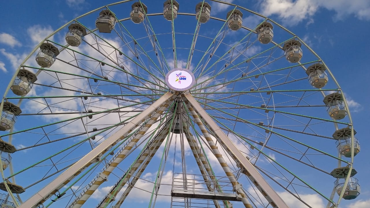 León, Guanajuato- La Feria de León cuenta con una de los juegos mecánicos que ofrece una vista panorámica espectacular de la ciudad, que no se compara con nada: la rueda de la fortuna móvil más grande de Latinoamérica.