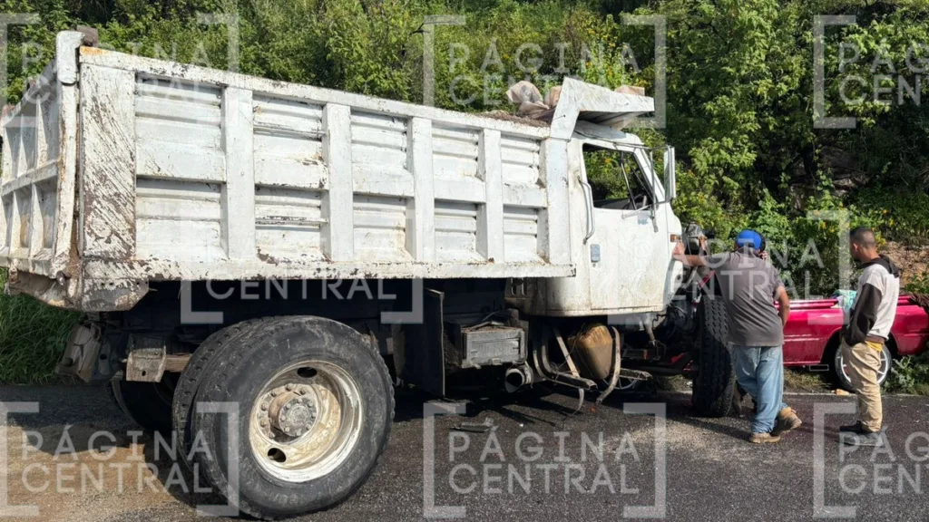 El percance ocurrió la tarde de este viernes en la citada carretera, cerca de la comunidad Hacienda Arriba, cuando el conductor de la tolva habría perdido el control y terminó impactándose contra esta camioneta Toyota de frente.