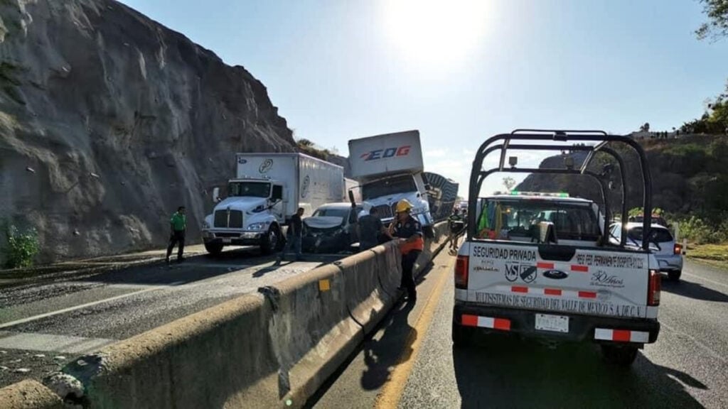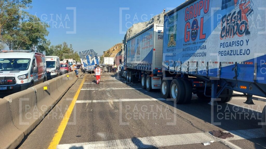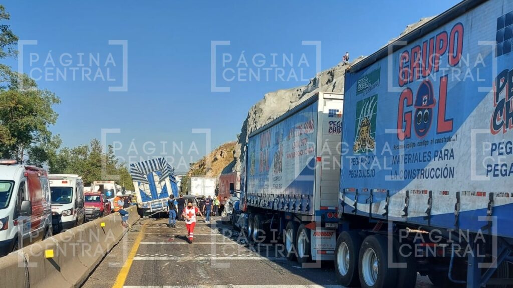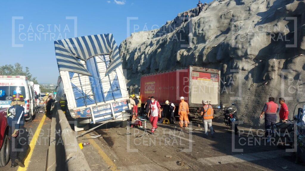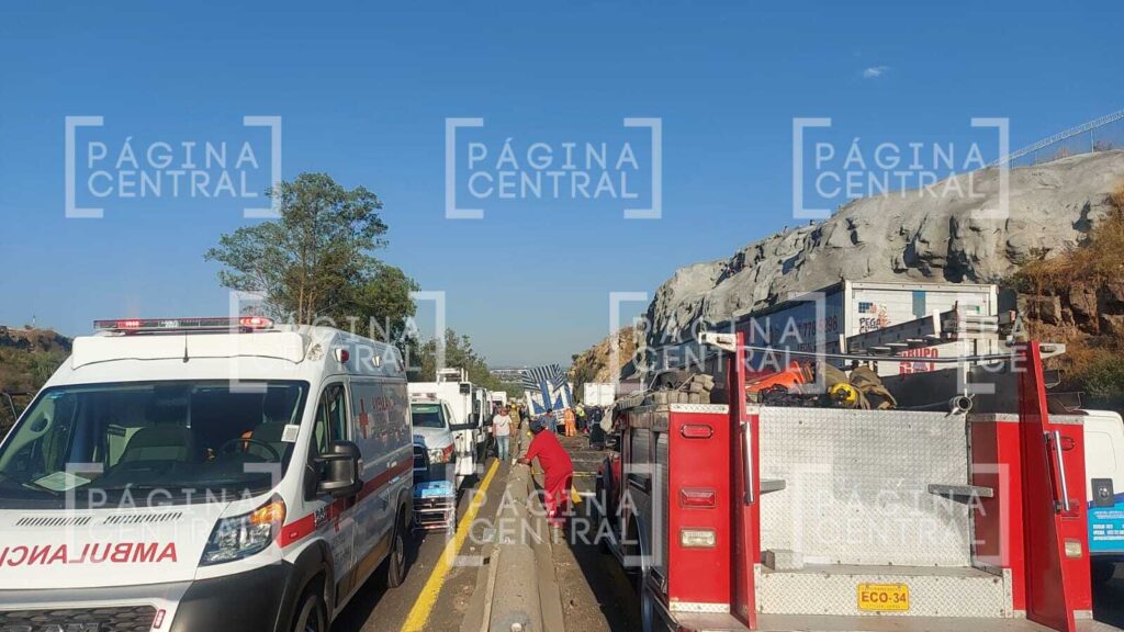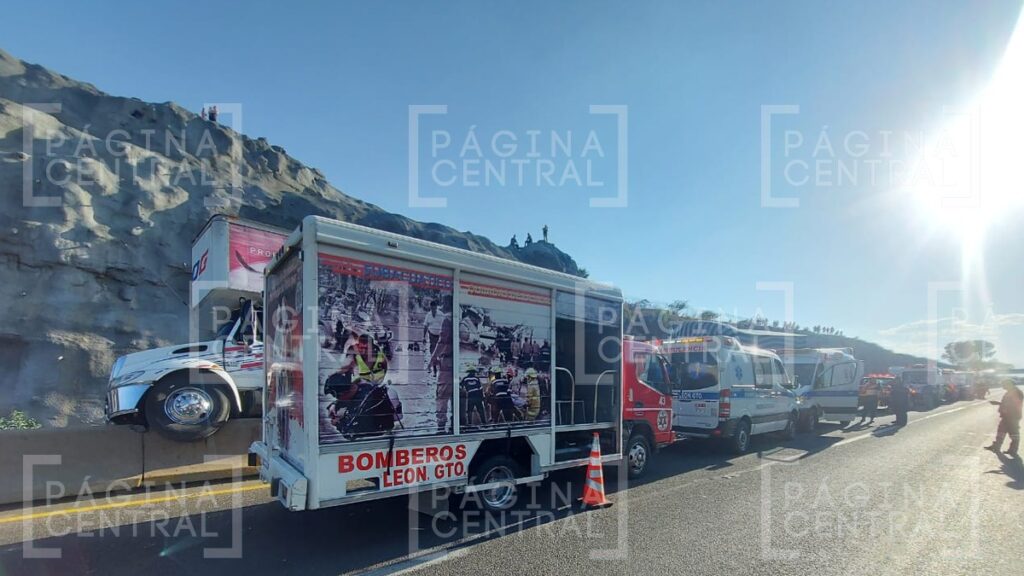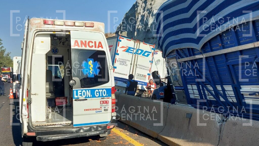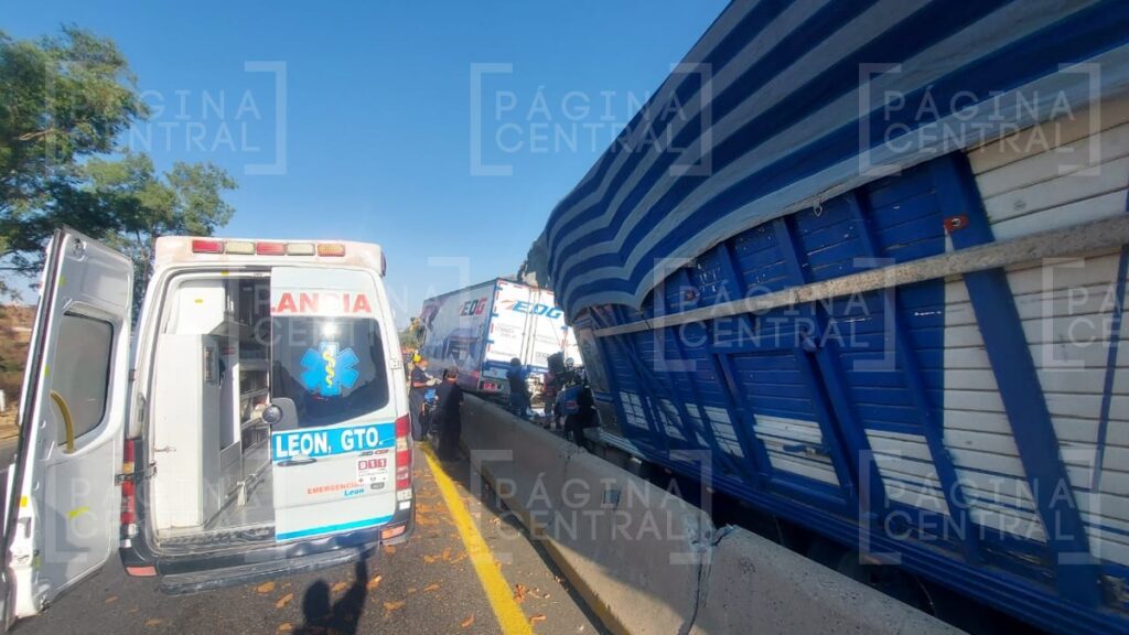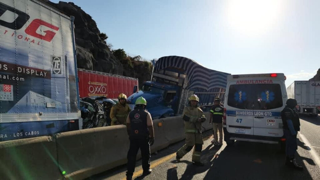La tarde de este lunes se registró un aparatoso accidente alrededor de las 6:20 en la carretera León-Aguascalientes, en el kilómetro 24 con dirección a León, cuando el conductor de un tráiler se quedó sin frenos.