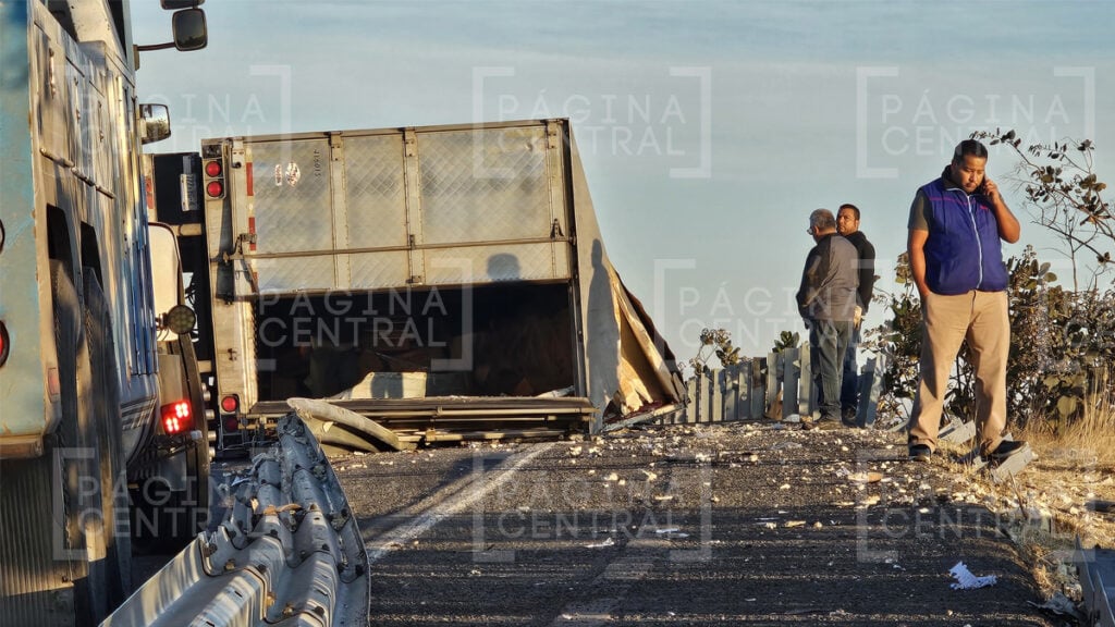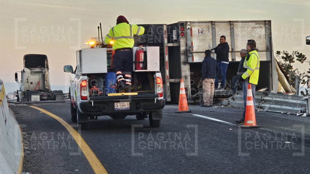 El accidente provocó el cierre al menos de un carril de la carretera León-Aguascalientes. Fotos: Página Central