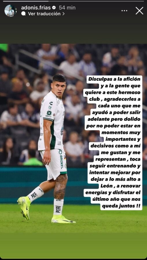 “Disculpas a la afición y a la gente que quiere a este hermoso club, agradecerles a cada uno que me ayudó a poder salir adelante, pero dolido por no estar en momentos muy importantes y decisivos como a mí me gustan y me representan. Toca seguir entrenando y intentar mejorar por dejar a lo más alto a León, a renovar energías y disfrutar el último año que nos queda juntos”, posteó.
