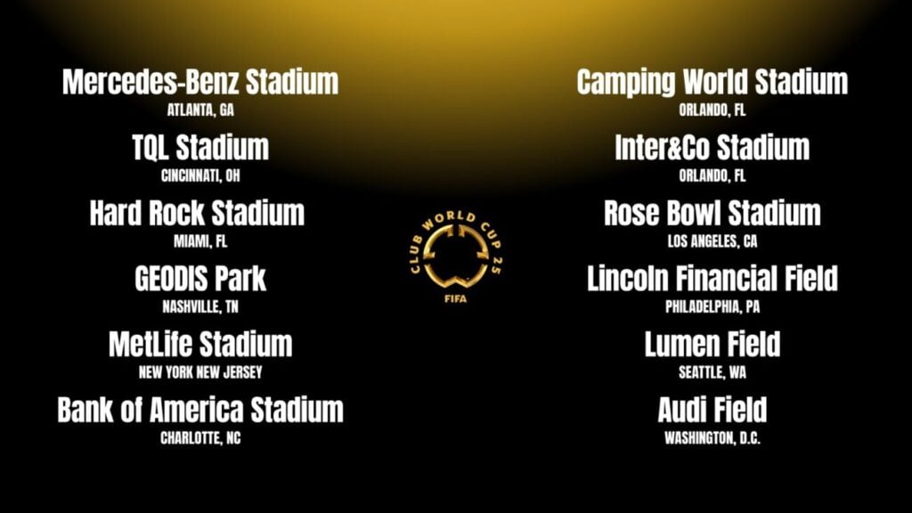 Las ciudades de Nashville, Cincinnati, Charlotte, Atlanta, Miami, Orlando, Washington, Philadelphia y Nueva York, también quedaron seleccionadas para el torneo que formarán 32 equipos, entre los que destacan Real Madrid, Chelsea, Manchester City, PSG, Bayern Munich, River Plate, Boca Juniors, entre muchos otros.