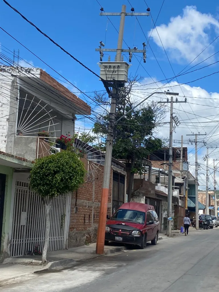 La familia que habita la vivienda con el número 415, incluso, se vio obligada a estacionar su vehículo antes del poste que sostiene el equipo de la CFE, para que no le caiga aceite caliente al cofre, provocándole daños.