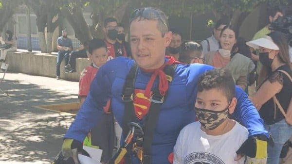 Luego, cuando terminaron el descenso, aprovecharon para ponerse sus capas y tomarse fotos con los chicos que estaban en el lugar. El personal del hospital también se disfrazó de superhéroes y princesas para hacer reír a los niños y niñas.