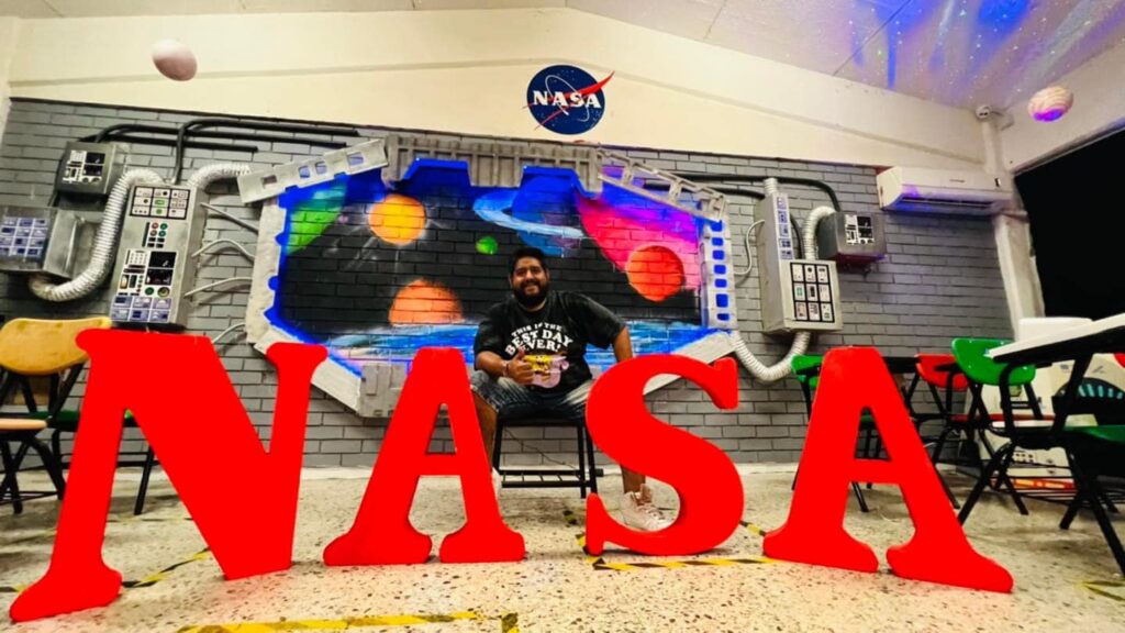 Para evitar el típico desánimo del regreso a clases y fomentar el gusto por los planetas, Carlos Rodríguez, también conocido como el “Profe chido” decoró su aula con temática de la NASA para este nuevo ciclo escolar.