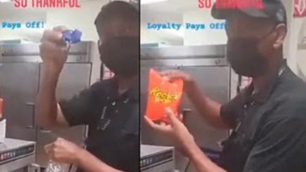 Pese a no faltar un solo día a su trabajo en Burger King en Los Ángeles, la empresa lo recompensan con una entrada de cine, dulces, dos plumas y un vaso de cristal