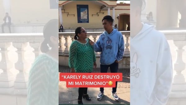 “Karely Ruiz destruyó mi matrimonio, porque yo encontré sus fotografías en el teléfono de mi exesposo, porque nos separamos. Yo le reclamé, pero él me dijo que era una famosa, no sé qué cosa, pero nos separamos por culpa de Karely Ruiz”, dijo la señora.