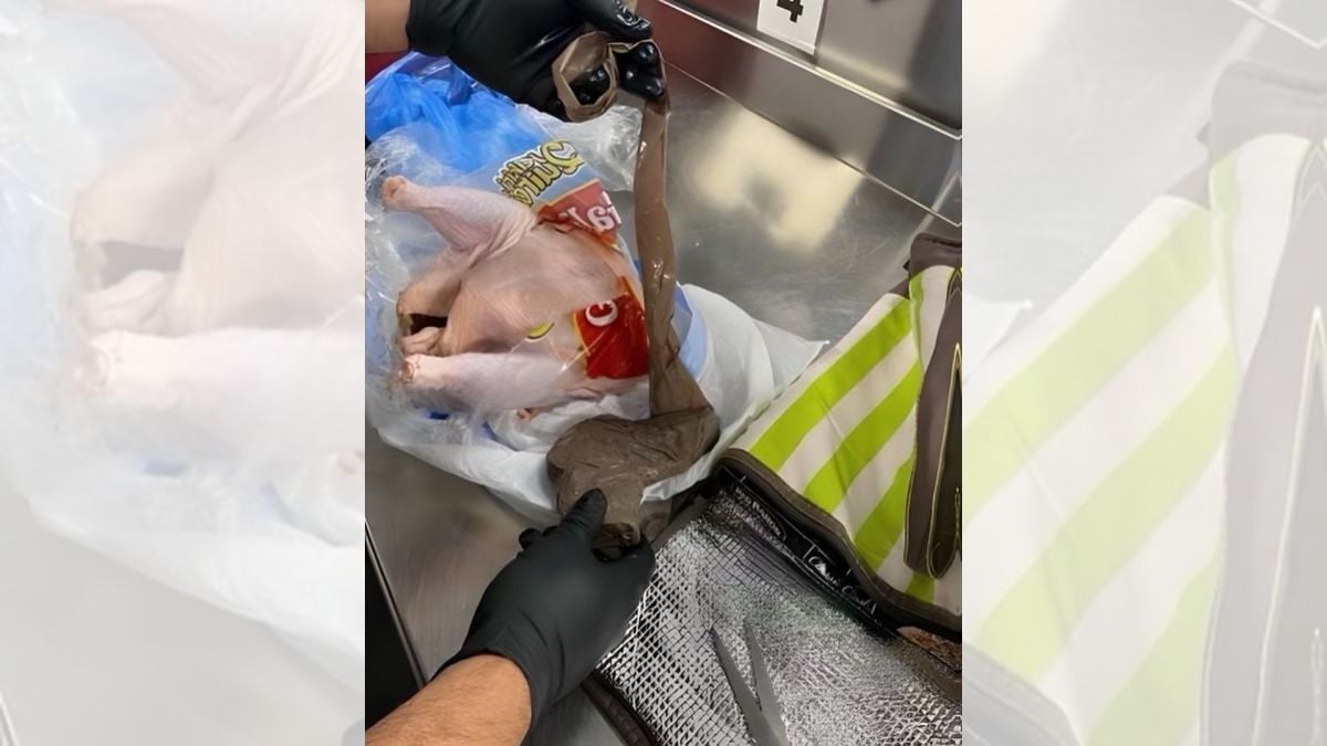 Una mujer fue detenida por esconder una pistola dentro un pollo crudo en su equipaje en el Aeropuerto Internacional de Fort Lauderdale-Hollywood, en Florida.