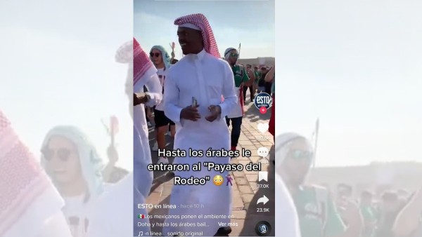 “Los mexicanos ponen el ambiente en Doha y hasta los árabes bailan el Payaso del Rodeo”, se lee en el video.