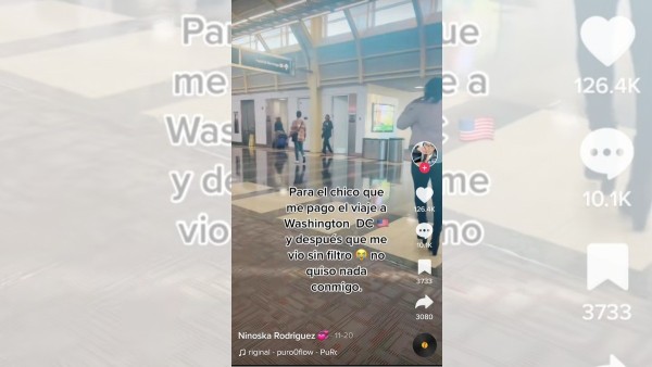 De acuerdo con la tiktoker, el supuesto novio le habría pagado el vuelo desde Massachusett hasta Washington para que por fin se vieran en persona, pero una vez que pasó al aeropuerto por ella, le señaló que no la quería porque en las fotos usaba muchos filtros y no era lo que aparentaba.