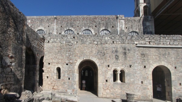 La iglesia bizantina fue construida en los siglos VII-VIII sobre los antiguos cimientos de una capilla primitiva en la que el santo fuera obispo y que se convirtió en un lugar de culto para los cristianos ortodoxos, pero que se inundó por el aumento del nivel del mar Mediterráneo.