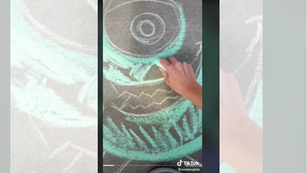 Con gises de colores plasma en la banqueta algunos de los personajes más icónicos de la compañía y los sube a su cuenta de Tik Tok para poder llegar a más gente, hasta conseguir su objetivo.