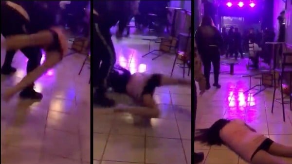 Tlaxcala - Una riña campal en un bar fue captada en video y dejó varias personas lesionadas, entre ellas una mujer que quedó inconsciente en el piso.
