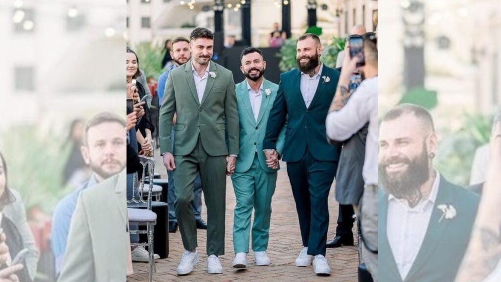 Douglas Casali, Átila Rodrigues y Douglas Haynes unieron sus vidas en una ceremonia íntima en el corazón de São Paulo, Brasil, dando ejemplo de una boda poliamorosa.