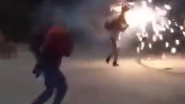 Circula en redes sociales un video en el que se puede ver a los habitantes de la zona bailando con un torito cargado de pirotecnia.