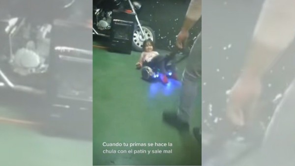 Una tiktokera compartió el momento en el que su prima cayó de un patín luego de dar varias vueltas para después pegarse en la cabeza con una bocina.