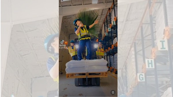 Algunos trabajadores han aprovechado tal euforia que decidieron recrear parte de las presentaciones del reguetonero subiéndose a una máquina de carga junto con una hoja de palma para simular la canción “Un coco”.