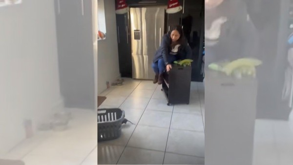 En la grabación se ve que la mujer mueve una mesa para que el roedor que se encuentra bajo de ella se mueva. En ese momento, America comienza a gritar y corre por un canasto para intentar atraparla. Mientras que su esposo graba el momento y brinca a una mesa para liberarse del animal.