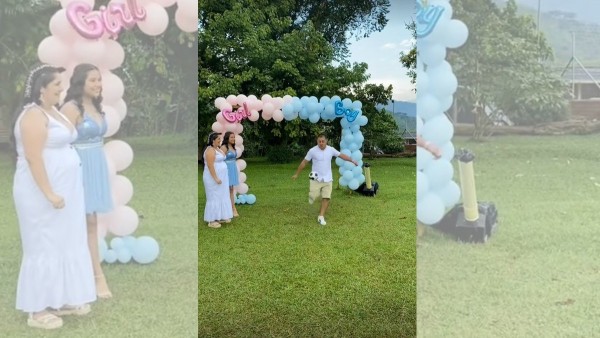 De acuerdo con el video, el futuro papá tendría que patear un balón del cual saldría polvo de color rosa o azul, dependiendo el género.