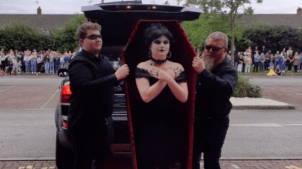 Una joven sorprendió a todos sus compañeros al llegar en ataúd a su fiesta de graduación de la Trinity Academy.